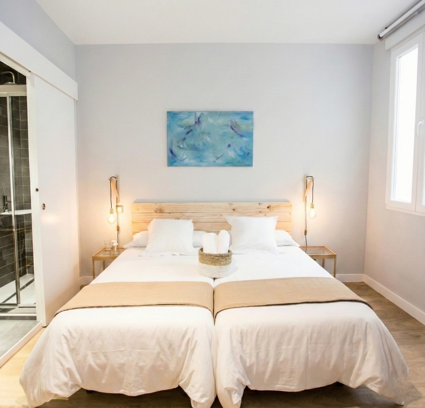 Comodidad y funcionalidad. En nuestras habitaciones encontrarás espacios sencillos y acogedores, completamente equipados para garantizar tu confort. Ideales para descansar tras un día explorando la ciudad, con opciones dobles y familiares.