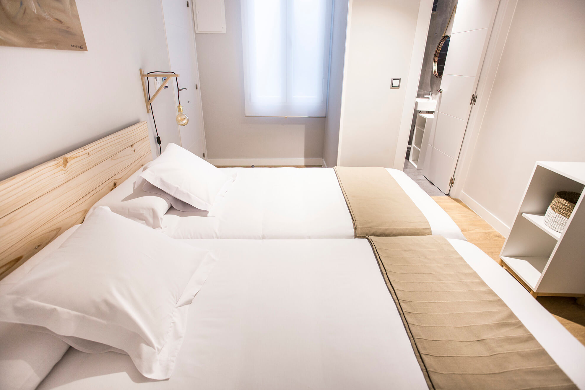 Dos camas de 0´90x1´90, baño privado, armario, TV de plasma 32”, artículos de aseo gratis, secador de pelo bajo petición. Los colchones y las almohadas son viscoelásticos con Aloe Vera. Entrada privada y cerradura electrónica con tarjeta magnética. Wifi gratis y servicio de limpieza a diario.